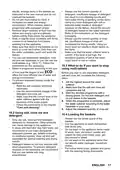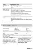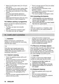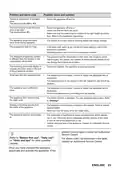 - Page 22: Problem and alarm code Possible cause and solution Technical malfunction of the appliance. The display shows iC0 or iC3. Switch the appliance off and on. The level of water inside the appliance is too high. The display shows iF1. Make sure that the filters are clean. The appliance stops and starts more times during operation. It is normal. It provides optimal cleaning results and energy savings. The programme lasts too long. Activating options can increase the programme duration. The displayed programme duration is different than the duration in the consumption values table. The pressure and the temperature of the water can change the programme duration. Small leak from the appliance door. The appliance is not levelled. Loosen or tighten the adjustable feet. The appliance door is difficult to close. Parts of the tableware are protruding from the baskets. The appliance door opens during the wash cycle. The AirDry function is activated. You can deactivate the function. Rattling or knocking sounds from the inside of the appliance. The tableware is not properly arranged in the baskets. The appliance trips the circuit-breaker. Internal electrical fault of the appliance. Contact an Authorised Service Centre.