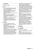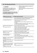 - Page 21: Troubleshooting Refer to the below table for information on possible problems. Improper repair of the appliance may pose a danger to the safety of the user. Any repairs must be performed by qualified personnel. With some problems, the display shows an alarm code. The majority of problems that may occur can be solved without the need to contact an Authorised Service Centre. You cannot activate the appliance. Make sure that the mains plug is connected to the mains socket. Make sure that there is no damaged fuse in the fuse box. The programme does not start. Make sure that the appliance door is closed. Press the start button. If the delay start is set, cancel the setting or wait for the end of the countdown. The appliance does not fill with water. The display shows i10 or i11. Make sure that the water tap is open. Make sure that the pressure of the water supply is not too low. The appliance does not drain the water. The display shows i20. Make sure that the sink spigot is not clogged. Make sure that the interior filter system is not clogged. The anti-flood device is on. The display shows i30. Close the water tap. Make sure that the appliance is correctly installed. Malfunction of the water level detection sensor. The display shows i41 - i44. Make sure that the filters are clean. Switch the appliance off and on. Malfunction of the wash pump or the drain pump. The display shows i51 - i59 or i5A - i5F. The temperature of the water inside the appliance is too high or malfunction of the temperature sensor occurred.