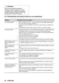 - Page 23: WARNING! We do not recommend using the appliance until the problem has been completely fixed. Unplug the appliance and do not plug it in again until you are certain that it operates correctly. Dishwashing and drying results are not satisfactory. Poor washing results may be due to insufficient loading or the need for a more intensive washing programme. Activate the option ExtraPower to improve the washing results of a selected programme. Clean spray arm jets and filters. Poor drying results can occur if tableware is left for too long inside the closed appliance. Activate AirDry to improve the drying performance. Ensure there is sufficient rinse aid and adjust the dosage if necessary. Whitish streaks or bluish layers on glasses and dishes may indicate an excessive rinse aid dosage. Stains and dry water drops on glasses and dishes can result from insufficient rinse aid or poor quality rinse aid. The interior of the appliance being wet is not a defect; humidity condenses on the appliance walls. Unusual foam during washing may be due to using the wrong detergent or pre-rinsing dishes under running water. Traces of rust on cutlery can result from too much salt in the washing water or mixing silver and stainless steel cutlery. Residues of detergent in the dispenser at the end of the programme may indicate blockage or improper loading of items in the baskets.
