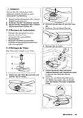 - Page 45: Reinigen Sie den Sprüharm unter fließendem Wasser. Entfernen Sie Verunreinigungen aus den Öffnungen des Sprüharms mit einem spitzen Gegenstand, z. B. einem Zahnstocher. Der Deckensprüharm ist innen an der Oberseite des Geräts angebracht. Verstopfte Löcher können zu unbefriedigenden Spülergebnissen führen. Drücken Sie zum Einsetzen des Sprüharms diesen nach oben und drehen Sie ihn gleichzeitig gegen den Uhrzeigersinn, bis er einrastet. Stellen Sie den Oberkorb auf die niedrigste Höhe, um den Sprüharm leichter zu erreichen. Um den Sprüharm vom Überleitungsrohr zu entfernen, drehen Sie das Montageelement gegen den Uhrzeigersinn und ziehen Sie den Sprüharm nach unten. Wir empfehlen, den Deckensprüharm regelmäßig zu reinigen, um zu verhindern, dass Verunreinigungen die Löcher verstopfen. Lassen Sie Wasser durch die Austrittsöffnungen laufen, um Verschmutzungen aus dem Inneren zu entfernen. Lösen Sie die Anschläge auf den Seiten der Gleitschienen der Besteckschublade und ziehen Sie die Schublade heraus.