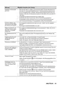 - Page 49: Störung Mögliche Ursache und Lösung Schlechte Trocknungsergebnisse. Das Geschirr stand zu lange im geschlossenen Gerät. Schalten Sie AirDry ein, damit die Tür automatisch geöffnet und die Trocknungsleistung verbessert wird. Es ist kein Klarspülmittel vorhanden oder die Klarspülmittelmenge ist nicht ausreichend. Füllen Sie den Klarspülmittel-Dosierer oder stellen Sie ihn auf eine höhere Stufe. Die Qualität des Klarspülmittels kann die Ursache sein. Verwenden Sie stets Klarspülmittel, auch mit Multi-Reinigungstabletten. Kunststoffteile müssen eventuell mit einem Geschirrtuch getrocknet werden. Das Programm enthält keine Trocknungsphase. Siehe Programmtabelle. Weißliche Streifen oder blau schimmernder Belag auf Gläsern und Geschirr. Die zugegebene Klarspülmittelmenge ist zu hoch. Stellen Sie eine niedrigere Stufe ein. Die Menge an Geschirrspülmittel ist zu hoch. Gläser und Geschirr weisen durch trockene Wassertropfen verursachte Flecken auf. Die zugegebene Klarspülmittelmenge ist nicht ausreichend. Stellen Sie eine höhere Stufe ein. Der Geräteinnenraum ist nass. Dies ist kein Defekt des Geräts. Feuchtigkeit kondensiert an den Wänden des Geräts. Ungewöhnliche Schaumbildung während des Spülgangs. Verwenden Sie nur Geschirrspülmittel für Geschirrspüler. Verwenden Sie ein Geschirrspülmittel eines anderen Herstellers. Spülen Sie Geschirr nicht unter fließendem Wasser vor. Rostspuren am Besteck. Es befindet sich zu viel Salz im Spülwasser. Siehe „Wasserenthärter“. Besteck aus Silber- und Edelstahl wurden zusammen in das entsprechende Fach gelegt. Ordnen Sie Silber- und Edelstahlteile nicht zusammen ein. Am Ende des Programms befinden sich Spülmittelreste im Behälter. Der Geschirrspülmittel-Tab blieb im Behälter stecken und wurde daher nicht vollständig im Wasser aufgelöst. Das Spülmittel kann nicht mit Wasser aus dem Behälter entfernt werden. Achten Sie darauf, dass die Sprüharme nicht blockiert oder verstopft sind. Achten Sie darauf, dass das Geschirr in den Körben den Deckel des Spülmittelbehälters nicht blockiert, so dass er sich öffnen lässt. Gerüche im Gerät. Siehe Kapitel „Reinigung und Pflege“. Starten Sie das Programm mit einem Entkalker oder Reinigungsmittel für Geschirrspüler. Es befindet sich zu wenig Salz im Behälter. Prüfen Sie die Nachfüllanzeige. Die Verschlusskappe des Salzbehälters ist lose. Ihr Leitungswasser ist hart. Siehe „Wasserenthärter“. Verwenden Sie Salz und schalten Sie die Regenerierung des Wasserenthärters ein, selbst wenn Sie Multi-Reinigungstabs verwenden. Wenn Kalkablagerungen bestehen, reinigen Sie das Gerät mit den geeigneten Reinigungsmitteln. Probieren Sie ein anderes Reinigungsmittel aus. Wenden Sie sich an den Reinigungsmittelhersteller.