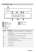 - Page 6: Control panel On/off button Option touch button Indicators Start touch button Program touch button Programme indicators Display Salt indicator. It is on when the salt container needs refilling. Rinse aid indicator. It is on when the rinse aid dispenser needs refilling.