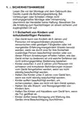 - Page 30: - Der Vertreiber muss geeignete Rückgabemöglichkeiten für Elektro- und Elektronikgeräte gewährleisten. - Altgeräte, die in keiner äußeren Abmessung größer als 25 cm sind, müssen kostenlos zurückgenommen werden. - Die Rücknahme von Altgeräten darf nicht an den Kauf eines neuen Gerätes gebunden sein. - Vertreiber von Lebensmitteln mit einer Verkaufsfläche von mindestens 800 m² sind ebenfalls verpflichtet, Elektrogeräte zurückzunehmen. - Die Rücknahmepflicht gilt auch beim Fernabsatz von Elektro- und Elektronikgeräten. - Der Ort der Abgabe kann auch der private Haushalt sein, wenn das neue Gerät dorthin geliefert wird. - Die unentgeltliche Abholung von Geräten ist auf bestimmte Gerätetypen beschränkt. - Rücknahmen können auch an Containerplätzen oder Recyclinghöfen erfolgen. - Die Pflichten gelten auch für den Vertrieb unter Verwendung von Fernkommunikationsmitteln. - Für weitere Informationen sollte die Gemeindeverwaltung kontaktiert werden.