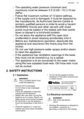 - Page 32: Make sure that the parameters on the rating plate are compatible with the electrical ratings of the mains power supply. Always use a correctly installed shockproof socket. Do not use multi-plug adapters and extension cables. Connect the mains plug to the mains socket only at the end of the installation. Do not put flammable products or items that are wet with flammable products in, near or on the appliance. Dishwasher detergents are dangerous. Do not drink and play with the water in the appliance. Ensure that there are no visible water leaks during and after the first use of the appliance. To protect drinking water, the enclosed non-return valve must be installed between the water tap and the water supply hose. To repair the appliance contact the Authorised Service Centre.