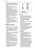- Page 49: Troubleshooting Improper repair of the appliance may pose a danger to the safety of the user. Any repairs must be performed by qualified personnel. Refer to the below table for information on possible problems. With some problems, the display shows an alarm code. You cannot activate the appliance. Make sure that the mains plug is connected to the mains socket. Make sure that there is no damaged fuse in the fuse box. The programme does not start. Make sure that the appliance door is closed. If the delay start is set, cancel the setting or wait for the end of the countdown. The appliance does not fill with water. Make sure that the water tap is open. Make sure that the pressure of the water supply is not too low. The appliance does not drain the water. Make sure that the sink spigot is not clogged. Make sure that the interior filter system is not clogged. The anti-flood device is on. Close the water tap. Make sure that the appliance is correctly installed.