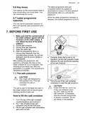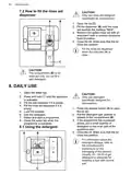 - Page 42: How to fill the rinse aid dispenser Only use rinse aid designed specifically for dishwashers. Fill the dispenser until the rinse aid reaches the marking MAX. Remove the spilled rinse aid with an absorbent cloth to prevent excessive foam formation. Close the lid and make sure that it locks into position. Fill the rinse aid dispenser when the indicator is clear. The compartment is for rinse aid only. Do not fill it with detergent. Daily use Open the water tap. Only use detergent specifically designed for dishwashers.