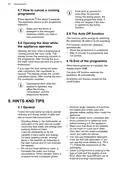 - Page 44: How to cancel a running programme If the door is opened for more than 30 seconds during the drying phase, the running programme ends. Press and hold for about 3 seconds to return to the programme selection. Make sure that there is detergent in the detergent dispenser before starting a new programme. The Auto Off function This function saves energy by switching the appliance off when it is not operating. Opening the door while the appliance operates Opening the door while a programme is running pauses the wash cycle. The wash cycle resumes from the point of interruption after closing the door. End of the programme When the programme is complete, the display shows 0:00. The Auto Off function switches the appliance off automatically. Hints and tips Remove larger residues of food from the dishes before putting them inside the appliance. Load the dishwasher to its full capacity to save water and energy. Do not pre-rinse dishes by hand as it increases water and energy consumption.