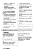 - Page 21: Horní koš přesuňte nahoru, aby velké kusy nádobí bylo možné vložit do dolního koše. Vždy využijte celý prostor košů. Spotřebič používejte pouze k mytí nádobí, které lze bezpečně mýt v myčce. Nemyjte ve spotřebiči nádobí vyrobené ze dřeva, rohoviny, hliníku, cínu a mědi. Před spuštěním programu zkontrolujte, zda se ostřikovací ramena mohou volně pohybovat. Nádobí před vyjmutím z myčky nechte vychladnout. Nejprve vyprázdněte dolní koš a teprve poté horní. Malé předměty a příbory vložte do zásuvky na příbory. Před každou údržbou kromě spuštění programu Machine Care spotřebič vždy vypněte a vytáhněte síťovou zástrčku ze zásuvky. Machine Care je program vyhrazený pro mytí vnitřku spotřebiče s optimálními výsledky.