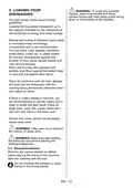 - Page 5: During usage This machine is for domestic use only; do not use it for other purposes. Commercial use will void the guarantee. Do not stand, sit or place loads on the open door of the dishwasher. Only use detergents and rinse aids produced specifically for dishwashers. Do not drink water from the machine. Due to the danger of explosion, do not place any chemical dissolving agents into the machine’s washing section. Check the heat-resistance of plastic items before washing them in the machine. Only put items in the machine which are suitable for dishwashing, and take care not to overfill the baskets. Do not open the door while the machine is in operation; hot water may spill out. The machine door should not be left open; it may cause accidents. Place knives and other sharp objects in the cutlery basket in a blade-down position.