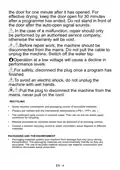 - Page 6: Keep the door open for 30 minutes after a programme has ended for effective drying. Do not stand in front of the door after the auto-open signal sounds. Repair should only be performed by an authorised service company to avoid voiding the warranty. Disconnect the machine from the mains before repair work. Do not pull the cable to unplug the machine. For safety, disconnect the plug once a program has finished. Do not unplug the machine with wet hands to avoid electric shock. Some machine components and packaging consist of recyclable materials. Cardboard parts can be put into waste paper containers for recycling. Packaging materials are environmentally friendly and recyclable.