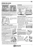 - Page 13: Körbe beladen Der Unterkorb ist für Töpfe, Deckel, Teller, Salatschüsseln und Besteck geeignet. Große Teller und Deckel sollten an die Seiten gelegt werden, um den Sprüharm nicht zu blockieren. Der Unterkorb hat klappbare Ablagen für Teller oder Pfannen. Die dritte Schublade ist für Besteck gedacht, das getrennt angeordnet werden sollte. Messer und scharfe Küchenutensilien sollten mit der Klinge nach unten eingeordnet werden. Kleine Teile wie Kaffeetassen können im mittleren Bereich platziert werden. Power Clean® sorgt für eine verstärkte Reinigung von stark verschmutztem Geschirr. Der Unterkorb hat eine spezielle Halterung für Pfannen oder Backbleche in senkrechter Position. Der Oberkorb ist für empfindliches Geschirr wie Gläser und Tassen gedacht. Er kann in der Höhe verstellt werden, um Platz für großes Geschirr im Unterkorb zu schaffen. Der Besteckkorb hat Gittern zur besseren Anordnung des Bestecks und darf nur im vorderen Teil des unteren Korbes eingesetzt werden. Klappbare Ablagen können ein- oder aufgeklappt werden, um die Anordnung des Geschirrs zu optimieren. Stielgläser können stabilisiert werden, indem sie in die vorgesehenen Aussparungen gestellt werden. Spezielles Zubehör ermöglicht das sichere Verstauen von Stielgläsern im unteren Geschirrkorb für beste Reinigungs- und Trocknungsergebnisse.