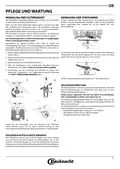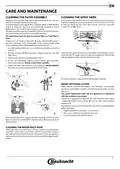 - Page 15: Pflege und Wartung Reinigung der Filtereinheit Die Filtereinheit regelmäßig reinigen, damit die Filter nicht verstopfen. Es kann vorkommen, dass Speisereste an den Sprüharmen hängen bleiben und die Wasserdüsen verstopfen. Prüfen Sie die Sprüharme daher regelmäßig und reinigen Sie sie bei Bedarf mit einer Kunststoffbürste. Die Filtereinheit setzt sich aus drei Filtern zusammen, die Spülwasser reinigen. Der Geschirrspüler darf nie ohne Filtersiebe oder mit ausgehängten Filtern in Betrieb genommen werden. Kontrollieren Sie einmal monatlich oder nach 30 Zyklen die Filtersiebgruppe. Der Wasserenthärter reduziert automatisch die Wasserhärte und verhindert Kesselsteinablagerungen. Eine einzelne Regeneration verbraucht etwa 3,5 l Wasser und dauert bis zu 5 Minuten länger. Setzen Sie die Filtereinheit nach der Reinigung der Filtersiebe wieder korrekt in ihren Sitz ein. Wasserschlauch reinigen, um sicherzustellen, dass er klar und frei von Verschmutzungen ist.