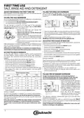 - Page 2: First time use Rinse aid makes dish drying easier. The rinse aid dispenser should be filled when the rinse aid refill indicator light in the control panel is lit. The use of salt prevents the formation of limescale on the dishes and on the machine’s functional components. It is mandatory that the salt reservoir never be empty. The salt reservoir is located in the lower part of the dishwasher and must be filled when the salt refill indicator light in the control panel is lit. Whenever you need to add salt, it is mandatory to complete the procedure before the beginning of the washing cycle to avoid corrosion. If you are not completely satisfied with the drying results, you can adjust the quantity of rinse aid used. To allow the water softener to work perfectly, it is essential that the water hardness setting is based on the actual water hardness in your house. If the rinse aid level is set to zero, no rinse aid will be supplied. A maximum of 5 levels can be set according to the dishwasher model. To open the detergent dispenser use the opening device. Introduce the detergent into the dry dispenser only. Only use salt that has been specifically designed for dishwashers. The detergent dispenser automatically opens up at the right time according to the program.