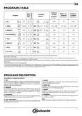 - Page 3: Programs table outlines various wash programs with details on duration, water consumption, and energy consumption. ECO program is the most efficient for normally soiled tableware and complies with EU Ecodesign legislation. SENSOR program adjusts based on the level of soiling detected on dishes. GLASS program is designed for delicate items sensitive to high temperatures. RAPID 30’ program is for half loads of lightly-soiled dishes and does not include a drying phase. INTENSIVE program is suitable for heavily soiled crockery, especially pans and saucepans. SILENT program is optimized for night-time operation with minimal noise. PREWASH program refreshes crockery planned for later washing without detergent. Not all options can be used simultaneously in the wash programs. Values for non-ECO programs are indicative and may vary based on several factors.