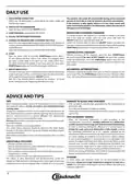 - Page 6: Daily use Check water connection Ensure the dishwasher is connected to the water supply and that the tap is open. Switch on the dishwasher Open the door and press the ON/OFF button. Load the racks Modify a running program if a wrong program was selected. Filling the detergent dispenser Choose the program and customize the cycle based on the type of crockery and its soiling level. Start the wash cycle Open the door to add extra crockery without switching off the machine. End of wash cycle The end of the wash cycle is indicated by beeps and flashing lights. Advice and tips Remove food residues from crockery before loading and ensure proper arrangement for effective cleaning.