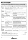 - Page 8: Troubleshooting In case your dishwasher doesn’t work properly, check if the problem can be solved by going through the following list. For other errors or issues please contact authorized After-sales Service. Spare parts will be available for a period of either up to 7 or up to 10 years. Salt reservoir is empty. Refill reservoir with salt. Rinse aid dispenser is empty. Refill dispenser with rinse aid. The appliance has not been plugged in properly. Insert the plug into the socket. The dishwasher door is not closed. Vigorously push the door until you hear the “click.” The dishwasher won’t drain. Check that the drain hose is not bent. The dishwasher makes excessive noise. The crockery has not been arranged properly. The dishwasher does not fill the water. Make sure there is water in the water supply or the tap is running.
