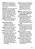 - Page 5: Door should not be left in the open position since this could present a tripping hazard. Do not use extension cords, multi-sockets or adapters to operate the product. Cleaning and maintenance works should not be performed by children unless they are supervised. Plug must be easily accessible. Keep packaging materials away from children to avoid the risk of injury and suffocation. Store all detergents and additives used with the product in a safe place away from children. For children's safety, cut the power cable and break the locking mechanism before disposing of the product. Before transporting the product, unplug it and disconnect its drain and water supply connections. The product must be unplugged during installation, maintenance, cleaning, repairing, and moving procedures. If the power cable is damaged, it must be replaced by a qualified person.