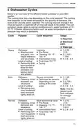 - Page 14: Dishwasher cycles overview The running time may vary depending on the cycle selected. The running time depends on water temperature, quantity of dishware, level of dirt, and selected options. Consumption values relate to normal conditions and a water hardness of 16 - 20 °E. Heavy cycle is for washing pots, pans, non-fragile dishware, and silverware. Auto cycle is sensor controlled for cleaning mixed dishware and silverware. Normal cycle is the most economical for cleaning mixed dishware and silverware. Displayed cycle time indicates an average value. Different influencing factors may result in deviations in running time. Level of soiling affects the choice of cycle. Rinse aid system status can change running time.
