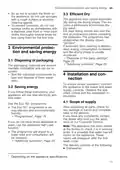 - Page 11: Environmental protection and saving energy To prevent corrosion, do not use sponge cloths on dishwashers with a stainless steel front. The appliance door opens automatically during the drying phase for economical drying results. For best drying results, wait until the end of the programme before unloading the tableware. If automatic door opening is deactivated, energy consumption increases. The packaging materials are environmentally compatible and can be recycled. Sort the individual components of packaging by type and dispose of them separately. If you follow these instructions, your appliance will use less electricity and less water. Use the Eco 50° programme for energy efficiency. After unpacking, check for any damage and completeness of the delivery. If you do not have much tableware to wash, use the additional Half Load function.