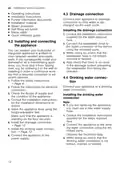 - Page 12: Installation and connection Operating instructions Installation instructions Further information documents Installation material Steam protection Drainage connection Connect your appliance to drainage connection so dirty water is discharged via the wash cycle. Installing the drainage connection Consult the installation instructions supplied for the steps required here. You can position your built-under or integrable appliance in a fitted kitchen between wooden and plastic walls. Connect your appliance to a drinking water connection. Follow the safety instructions. Make the appliance level using the height-adjustable feet.