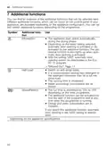 - Page 18: Additional functions You can find an overview of the additional functions that can be selected here. Different additional functions are available depending on the appliance configuration. You can select certain additional functions depending on the programme. EfficientDry: The appliance door opens automatically during the drying phase. Half Load: Switch on with small loads; it is recommended to add less detergent. SpeedPerfect+: The run time is shortened by 15% to 75% depending on the rinse programme. The additional function can be activated before the start of the programme and at any time during the programme. Energy and water consumption are increased with SpeedPerfect+. Automatic door opening in the o02 setting is deactivated when SpeedPerfect+ is selected.
