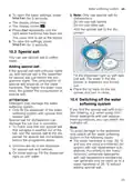 - Page 23: Water softening system To open the basic settings, press for 3 seconds. Only use special salt for dishwashers. Do not use salt tablets or table salt. The display shows Hxx. Add the special salt to the dispenser. Press repeatedly until the right water hardness has been set. The value H04 is set at the factory. You can use special salt to soften water. If the special salt refill indicator lights up, add special salt to the dispenser just before the programme starts. To avoid damage to the appliance, only switch off the water softening system in specific cases.