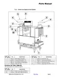 - Page 15: Parts Manual Left-to-Right Assembly Description of various components including switches, screws, and brackets. Final rinse rod shield is specified for final rinse only. Includes details on required quantities for each item. Various types of nuts, bolts, and washers are listed. Conveyor switch components are detailed. Model EST-44 part manual is referenced. Indicates the revision of the manual.
