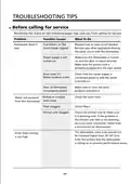 - Page 26: Troubleshooting tips Before calling for service, reviewing the charts may save you from calling for service. Possible causes for the dishwasher not starting include a blown fuse or tripped circuit breaker. Make sure the dishwasher is turned on and the door is closed securely. Check that the water supply is connected properly and the water is turned on. Ensure the door of the dishwasher is properly closed and latched. Check the drain hose for kinks or crushes. If water is not pumped from the dishwasher, check the filters. Make sure the kitchen sink is draining well. If the kitchen sink is clogged, you may need a plumber rather than a serviceman for dishwashers. The dishwasher drain hose should not be installed higher than 39 1/4 from the surface that the dishwasher is sitting on to prevent performance issues.