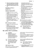- Page 18: Cleaning the upper spray arm Do not remove the upper spray arm. Troubleshooting Improper repair of the appliance may pose a danger to the safety of the user. Any repairs must be performed by qualified personnel. You cannot activate the appliance. Make sure that the mains plug is connected to the mains socket. Make sure that there is no damaged fuse in the fuse box. The programme does not start. Make sure that the appliance door is closed. If the delay start is set, cancel the setting or wait for the end of the countdown. The appliance does not fill with water. Make sure that the water tap is open. Make sure that the pressure of the water supply is not too low. The lights related to MY TIME selection bar flash intermittently. Make sure that the water tap is not clogged. The appliance does not drain the water. Make sure that the sink spigot is not clogged. Make sure that the interior filter system is not clogged.