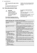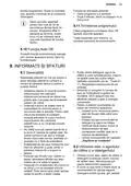 - Page 45: Problemă și cod de alarmă Cauză posibilă și soluție Nivelul apei din aparat este prea mare. Opriți și porniți din nou aparatul. Verificați dacă filtrele sunt curate. Asigurați-vă că furtunul de evacuare este instalat la înălțimea corectă deasupra podelei. Luminile corespunzătoare clipesc de 15 ori intermitent. Este emis un semnal sonor intermitent. Aparatul se oprește și pornește de mai multe ori în timpul funcționării. Este normal. Aceasta oferă rezultate optime la curățare și economii de energie. Programul durează prea mult. Dacă este setată opțiunea pornire întârziată, anulați setarea de întârziere sau așteptați sfârșitul numărătorii inverse. Activarea ExtraPower crește durata programului. Mici scurgeri din ușa aparatului. Aparatul nu este adus la nivel. Ușa aparatului nu este centrată pe cuvă. Reglați piciorul din spate (dacă se poate). Ușa aparatului se deschide greu. Funcția AirDry este activată. Puteți dezactiva funcția. Consultați „Setările de bază”. Sunete de huruit sau ciocănit din interiorul aparatului. Vesela nu este pusă corect în coșuri. Consultați prospectul despre încărcarea coșului. Verificați dacă brațele stropitoare se pot roti liber. Aparatul declanșează întrerupătorul. Amperajul este insuficient pentru a alimenta simultan toate aparatele aflate în uz. Verificați amperajul de la priză și capacitatea contorului sau opriți unul dintre aparatele aflate în uz. Defect electric intern al aparatului. Contactați un centru de service autorizat. După verificarea aparatului, dezactivați și activați aparatul. Dacă problema apare din nou, contactați centrul de service autorizat. AVERTISMENT! Nu recomandăm utilizarea aparatului până la remedierea completă a problemei. Scoateți aparatul din priză și nu-l mai conectați la loc dacă nu sunteți siguri că acesta funcționează corect. Pentru codurile de alarmă care nu sunt descrise în tabel, contactați un centru de service autorizat.