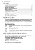- Page 44: Problemă și cod de alarmă Cauză posibilă și soluție Dispozitivul anti-inundație Închideți robinetul de apă. Asigurați-vă că aparatul a fost instalat corect. Asigurați-vă că încărcarea coșurilor s-a făcut conform instrucțiunilor din manualul utilizatorului. Luminile corespunzătoare barei de selecție MY TIME clipesc de 3 ori intermitent. Funcționarea incorectă a senzorului de detectare a nivelului apei. Verificați dacă filtrele sunt curate. Opriți și porniți din nou aparatul. Luminile corespunzătoare barei de selecție MY TIME clipesc de 4 ori intermitent. Funcționarea incorectă a pompei de spălare sau a pompei de evacuare. Luminile corespunzătoare barei de selecție MY TIME clipesc de 5 ori intermitent. Temperatura apei din interiorul aparatului este prea ridicată sau senzorul de temperatură funcționează incorect. Asigurați-vă că temperatura apei de alimentare nu depășește 60°C. Luminile corespunzătoare barei de selecție MY TIME clipesc de 6 ori intermitent. Defecțiune tehnică a aparatului. Opriți și porniți din nou aparatul. Luminile corespunzătoare barei de selecție MY TIME clipesc de 12 ori intermitent.
