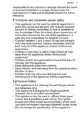 - Page 3: responsible for any injuries or damage that are the result of incorrect installation or usage. Always keep the instructions in a safe and accessible location for future reference. Children and vulnerable people safety This appliance can be used by children aged from 8 years and above and persons with reduced physical, sensory or mental capabilities or lack of experience and knowledge if they have been given supervision or instruction concerning the use of the appliance in a safe way and understand the hazards involved. Children between 3 and 8 years of age and persons with very extensive and complex disabilities shall be kept away from the appliance unless continuously supervised. Children of less than 3 years of age should be kept away from the appliance unless continuously supervised. Children should be supervised to ensure that they do not play with the appliance. Keep detergents away from children. General Safety This appliance is for cleaning household-type dishes and tableware only. This appliance is designed for single household domestic use in an indoor environment. This appliance may be used in offices, hotel guest rooms, bed & breakfast guest rooms, farm guest houses and other similar accommodation where such use does not exceed domestic usage levels. Do not change the specification of this appliance.