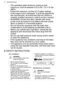 - Page 4: Make sure that the parameters on the rating plate are compatible with the electrical ratings of the mains power supply. If the water inlet hose is damaged, immediately close the water tap and disconnect the mains plug from the mains socket. Always use a correctly installed shockproof socket. Do not use multi-plug adapters and extension cables. Make sure not to cause damage to the mains plug and to the mains cable. Do not put flammable products or items that are wet with flammable products in, near or on the appliance. Dishwasher detergents are dangerous. Follow the safety instructions on the detergent packaging. Do not drink and play with the water in the appliance. To repair the appliance contact the Authorised Service Centre. Ensure that there are no visible water leaks during and after the first use of the appliance.