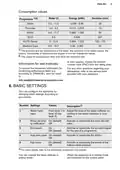 - Page 8: Consumption values for various programmes include water, energy, and duration metrics. The pressure, temperature, mains supply variations, options, quantity of dishes, and degree of soil can change the values. Values for programmes other than ECO are indicative only. Basic settings can be configured according to user needs. Water hardness can be adjusted from level 1 to level 10. Rinse aid indicator can be activated or deactivated. Acoustic signal for the end of a programme can be turned on or off. AirDry feature can be activated or deactivated. Key tones for button presses can be activated or deactivated. Refer to the information provided in this chapter for more details on changing basic settings.