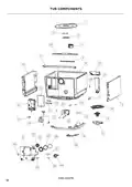 - Page 15: Tub components reference part numbers include various descriptions such as PCB, bung, harness, and hose. Key components listed are the water softener, overflow ring seals, and O rings. The document details specific part numbers associated with each component. It includes both assembly and sealing parts for the water softener system. The list provides a comprehensive overview of the necessary components for assembly and maintenance.