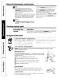 - Page 4: About the dishwasher control panel. You can locate your model number on the tub wall just inside the door. Throughout this manual, features and appearance may vary from your model. The status display tells you what’s happening while the dishwasher is in operation and may flash, indicating a malfunction. The lights will come on indicating the sequence of operation the dishwasher is in. The light remains on until the door is opened. Clean is displayed when a wash cycle is complete. The light will remain on until the door is opened. This cycle is meant for heavily soiled dishes or cookware with dried-on or baked-on soils. Everyday dishes are safe to be used in this cycle.