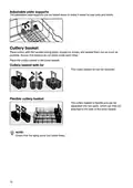 - Page 10: Adjustable plate supports can be folded down to make it easier to load pots and bowls. Place cutlery with the handles facing down, except for knives, and spread them out as much as possible. Ensure that spoons do not stack inside each other. Place the cutlery basket in the lower basket. The cutlery basket lid can be removed. The cutlery basket is flexible and can be separated into two parts. The two parts of the cutlery basket can be attached to the side of the lower basket. Check that the spray arms can rotate freely.