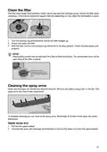 - Page 19: Clean the filter. The filter traps larger food particles, which cannot get past the drainage pump. Empty the filter when necessary and clean it at regular intervals depending on usage. Turn the locking ring anticlockwise and lift the filter straight up. Refit the filter and turn the locking ring clockwise to its stop position. Dishwashing results may be affected if the filter is fitted incorrectly. Check that the yellow drainage pump stop is in place. Cleaning the spray arms is necessary as holes and bearings can become blocked. Remove any debris using a pin or similar tool. To facilitate cleaning, you can remove the spray arms.