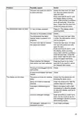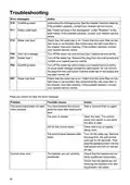 - Page 22: Troubleshooting Error messages F10 - Overfilling water Unblocking the drainage pump. If the problem persists, contact your nearest service centre. F11 - Water outlet fault See Water remains in the dishwasher under Problem. If the problem persists, contact your nearest service centre. F12 - Water inlet fault Check that the water tap is on and that the outer filter on the inlet hose is not blocked. If the problem persists, contact your nearest service centre. F40 - Inlet valve leakage Turn off the water tap and contact your nearest service centre. F41 - Heater fault 1 Turn off the water tap, remove the plug from the wall socket, and contact your nearest service centre. F54 - Overfilling water Turn off the water tap and contact your nearest service centre. F67 - Water inlet fault Check that the water tap is on and that the outer filter on the inlet hose is not blocked. If the problem persists, contact your nearest service centre. Press any button to clear the error message. Problem Possible causes The control panel does not react Wait a moment then try again. Cannot close door. Check that the baskets are correctly positioned horizontally.