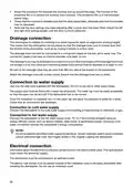 - Page 28: Mount the protective film beneath the worktop to protect it from moisture. Check that the machine is installed for free door opening to avoid disrupting door lock functionality. Adjust the door springs equally for balance after fitting a cover door. The dishwasher can be installed in a raised recess for ergonomic working height. The drainage hose can be connected to a floor drain or a connection nipple on the sink unit's water trap. The drainage hose may be extended by a maximum of 3 m, with a total length not exceeding 4.5 m. Use only the inlet hose supplied with the dishwasher for the water supply connection. Connect the dishwasher to the cold water supply if the building is heated using oil, electricity, or gas. Connect to the hot water supply (max. 70 °C) if using energy-efficient heating methods to reduce energy consumption. The dishwasher must be connected to an earthed socket, and the electric wall socket should be easily accessible.