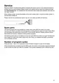 - Page 29: Service Read the chapter Troubleshooting before contacting the service centre. If you have encountered a problem that you cannot resolve, please contact your nearest service centre for professional help. When making contact, provide the details on the serial number plate. Please note that non-professional repairs may risk user safety and affect the warranty. Spare parts The following spare parts are available for at least seven years after the model is no longer manufactured: motor, circulation and drainage pump, heating element, pipes and hoses, valves, filters and aquastops, door attachment components, circuit boards, electronic display, pressure sensor, thermostats and sensors, software including restore programs. The following spare parts are available for at least ten years after the model is no longer manufactured: door hinges and seals, other seals, spray arms, drain filters, wire baskets and plastic accessories such as baskets and lids. Number of program cycles Press and hold the appropriate buttons for 3 seconds to show the number of program cycles on the display. If the dishwasher has completed more than 999 cycles, the number of thousands is displayed followed by the number of cycles up to 999.