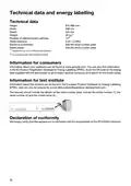 - Page 30: Technical data and energy labelling Height: 816-890 mm Width: 598 mm Depth: 555 mm Weight: 30 kg Number of standard place settings: 14 Water pressure: 0.03-1.0 MPa Electrical connection: See the serial number plate Rated power: See the serial number plate Information for consumers Declaration of conformity: We hereby certify that this appliance is in conformity with the requirements of the 2014/53/EU directive.
