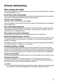 - Page 7: Greener dishwashing Save energy and water when using a dishwasher in a residential setting. Do not rinse the dishes under running water as this will lead to increased energy and water consumption. Choose a green detergent and read the environmental declaration on the packaging. Run a fully loaded dishwasher to save energy and water. Select dishwashing program – Eco 55° for normally soiled dishes, which is effective in terms of energy and water consumption. Activate the setting – TotalDry for better drying results. Connect the dishwasher to the cold water supply if the building is heated using oil, electricity, or gas. Connect the dishwasher to the hot water supply (max. 70 °C) if the building is heated using energy-efficient means. Do not exceed the permitted water supply temperature as certain materials cannot withstand high heat.