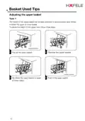 Page 12: Basket used tips The height of the upper basket can be easily adjusted to accommodate taller dishes in either the upper or lower basket. To adjust the height of the upper rack, follow these steps: Remove the upper basket. Pull out the upper basket. Push in the upper basket. Re-attach the upper basket to upper or lower rollers.