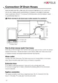 Page 20: Connection of drain hoses requires inserting the hose into a drain pipe with a minimum diameter of 4 cm or letting it run into the sink. The height of the drain pipe must be less than 1000mm, and the free end of the hose must not be immersed in water to avoid backflow. Securely fix the drain hose in either position A or position B. If the sink is 1000mm higher from the floor, excess water in hoses cannot be drained directly into the sink. Drain excess water from hoses into a bowl or suitable container held outside and lower than the sink. Ensure that the water drain hose is correctly fitted to avoid leaks and is not kinked or squashed. If an extension hose is needed, use a similar drain hose that is no longer than 4 meters. The waste connection must be at a height less than 100 cm from the bottom of the dish. The water drain hose should be fixed properly.