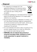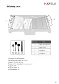 Page 50: Product fiche (EN50242) Sheet of household dishwasher according to EU Directive 1016/2010 & 1059/2010: Manufacturer: HAFELE Type / Description: HDW-F605B Energy efficiency class: A+ Annual energy consumption: 304 kWh Energy consumption of the standard cleaning cycle: 1,069 kWh Annual water consumption: 2744 liter Drying efficiency class: A Noise level: 47dB(A) Power consumption: 1760-2100W Rated voltage / frequency: 220-240V/50Hz