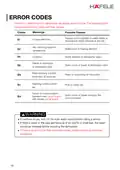 Page 98: Mã lỗi Nếu có sự cố, máy rửa chén sẽ hiển thị mã lỗi. Bảng sau đây hiển thị các mã lỗi có thể xảy ra và nguyên nhân. E1: Thời gian cấp nước lâu. Vòi không được mở hoặc lượng nước vào hạn chế hoặc áp lực nước quá thấp. E3: Bộ gia nhiệt nước bị sự cố. E4: Không đạt nhiệt độ yêu cầu. E8: Lỗi định hướng của van phân phối. E9: Tiếp tục nhấn một nút có nước hoặc vật thể lạ xâm nhập vào trong hơn 30 giây. Ec: Hệ thống điều khiển máy lỗi. Ed: Lỗi giao tiếp giữa bo mạch chính với bo mạch hiển thị. Cảnh báo Nếu xảy ra tràn nước, phải tắt nguồn cấp nước chính trước khi gọi dịch vụ. Nếu có nước trong bình hứng nước tràn do đổ đầy hoặc rò rỉ nhỏ, cần xả nước trước khi khởi động lại máy rửa chén. Nếu có mã lỗi không thể khắc phục được, yêu cầu chuyên gia hỗ trợ.