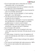 Page 7: Do not wash plastic items unless they are marked dishwasher safe or the equivalent. Use only detergent and rinse agents recommended for use in an automatic dishwasher. Never use soap, laundry detergent, or hand washing detergent in your dishwasher. The door should not be left open, since this could increase the risk of tripping. If the supply cord is damaged, it must be replaced by the manufacturer or its service agent. During installation, the power supply must not be excessively or dangerously bent or flattened. The appliance needs to be connected to the main water valve using new hose sets. To save energy, in standby mode, the appliance will switch off automatically while there is no operation in 30 minutes. The maximum number of place settings to be washed is 15. The maximum permissible inlet water pressure is 1MPa.