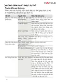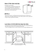 Page 74: Hướng dẫn khắc phục sự cố Trước khi gọi dịch vụ, xem xét các hướng dẫn dưới đây có thể giúp bạn tự xử lý mà không cần phải gọi dịch vụ. Máy rửa chén không khởi động: Kiểm tra cầu chì bị đứt hoặc thay cầu chì hoặc bật lại aptomat. Đảm bảo máy rửa chén đã được bật và cửa được đóng chặt. Áp lực nước thấp: Kiểm tra xem nguồn cấp nước có được kết nối đúng cách và đã bật nước chưa. Đảm bảo đóng cửa đúng cách và không đóng không đúng cách. Ống thoát nước bị bơm được nước xoắn hoặc bị kẹt: Kiểm tra ống thoát nước. Bộ lọc bị tắc: Kiểm tra hệ thống lọc. Bồn rửa nhà bếp bị tắc: Kiểm tra bồn rửa nhà bếp để đảm bảo thoát nước tốt. Chất tẩy rửa không phù hợp: Chỉ sử dụng chất tẩy rửa dành riêng cho máy rửa chén để tránh tạo bọt. Nếu điều này xảy ra, mở máy rửa chén và để bọt bay hơi. Thêm 1 lít nước lạnh vào đáy máy rửa chén.