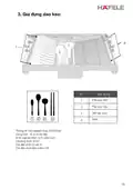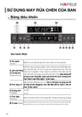 Page 100: Thông tin sản phẩm (EN50242) Máy rửa bát gia dụng tuân theo Chỉ thị EU 1016/2010 và 1059/2010. Nhà sản xuất: HAFELE. Loại/Mô tả: HDW-F605B. Tiêu thụ điện năng hàng năm: 304 kWh. Tiêu thụ điện năng một chu trình rửa tiêu chuẩn: 1,069 kWh. Lượng nước tiêu thụ hàng năm: 2744 lít. Chương trình rửa tiêu chuẩn: ECO 53°C. Thời lượng chương trình của chương trình rửa tiêu chuẩn: 200 phút. Độ ồn: 47 dB(A). Công suất tiêu thụ: 1760-2100 W.